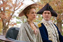 Above: "The fans used at the ball were all made for this scene in particular. Martha Washington’s had a printed map of the world circa 1770’s." — Costume Designer Lahly Poore-Ericson