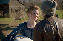 In Season Three, Abigail finds herself at the opposite extreme, carrying secret messages between John André and Peggy Shippen in Philadelphia. Compelled to lie to each of them, Abigail begins to wonder if she is also lying to herself.