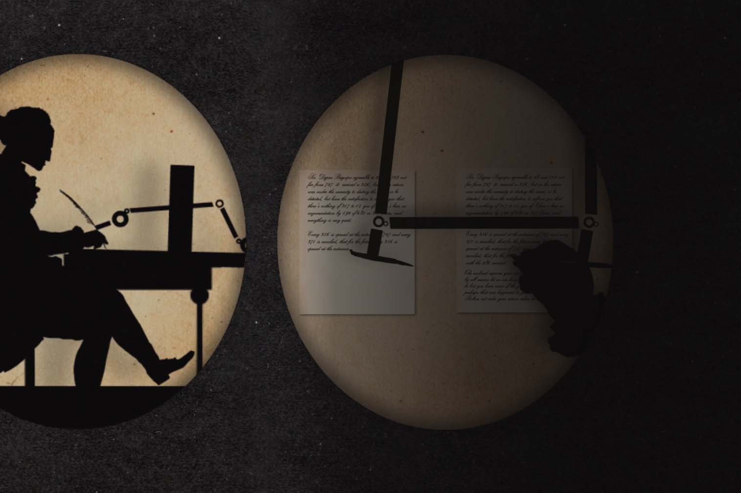 Below: "The documents were either compared from actual documents or I composed them... I kind of have a talent for the way people wrote in the past, mainly because I've studied old documents for 50 years!" — Prop Master Kelly Farrah