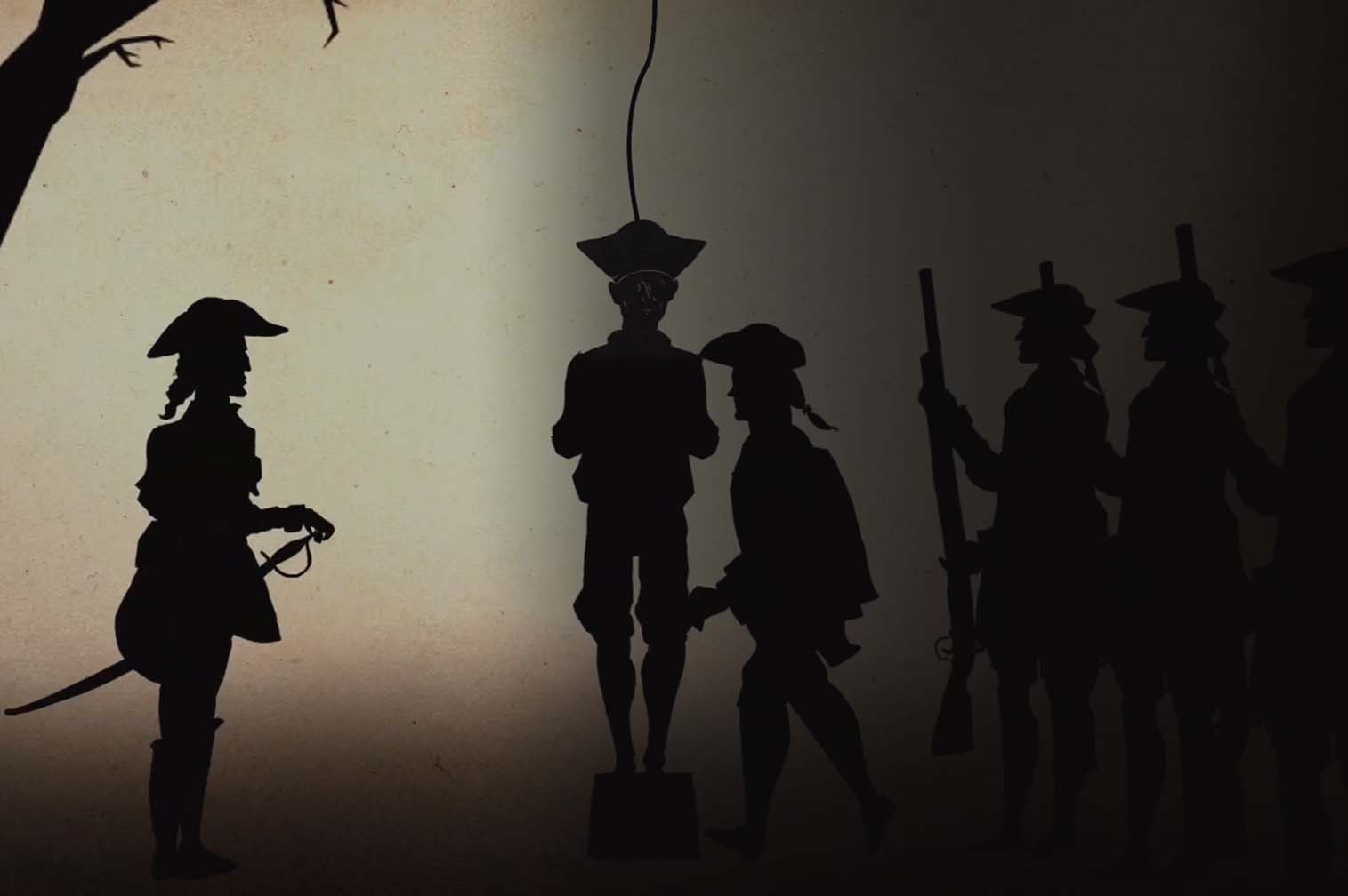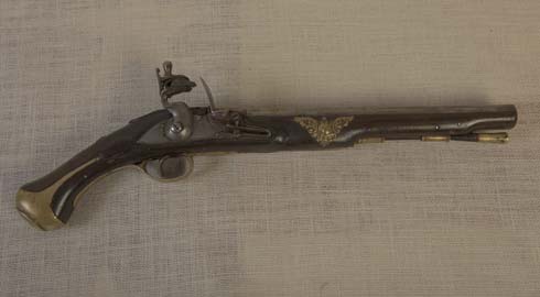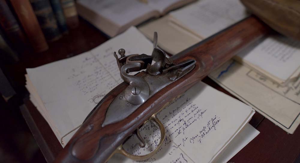 Below: "For the guns, we use reproduction Brown Besses and Charleville muskets for the most part. Some of the pistols are reproduction as well, but some are original." — Prop Master Kelly Farrah