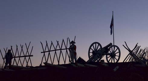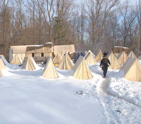 Below: "West Point ended up being a big set for us. There was nothing there, so we created a couple of camps, the embankment and the fort from scratch. We shot for about three days and we only had about four days to build it all. We had terrible weather — we kept getting hit with the snow, and it was bitterly cold and windy. But in the end, it worked out really well." — Production Designer Caroline Hanania