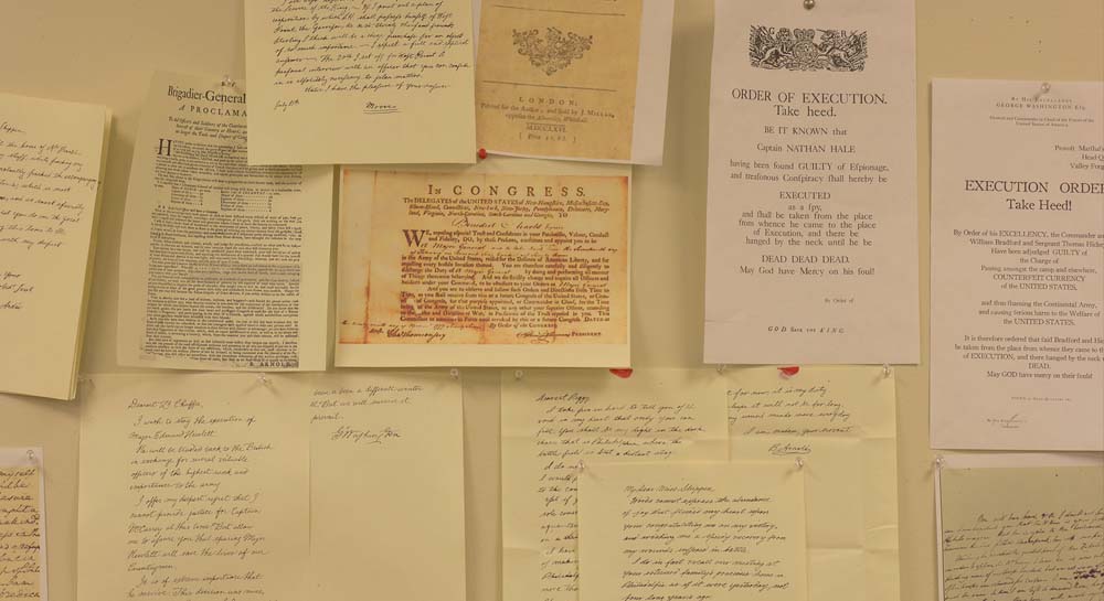 Above: "Some of the documents are photocopies of the originals — something we've never tried before. For example, the first page of the letters that Andre carries from Arnold concerning West Point was the only page I could find a facsimile of. The rest I composed from descriptions of what was found on him. We never actually see the papers, but they are still historically accurate." — Prop Master Kelly Farrah